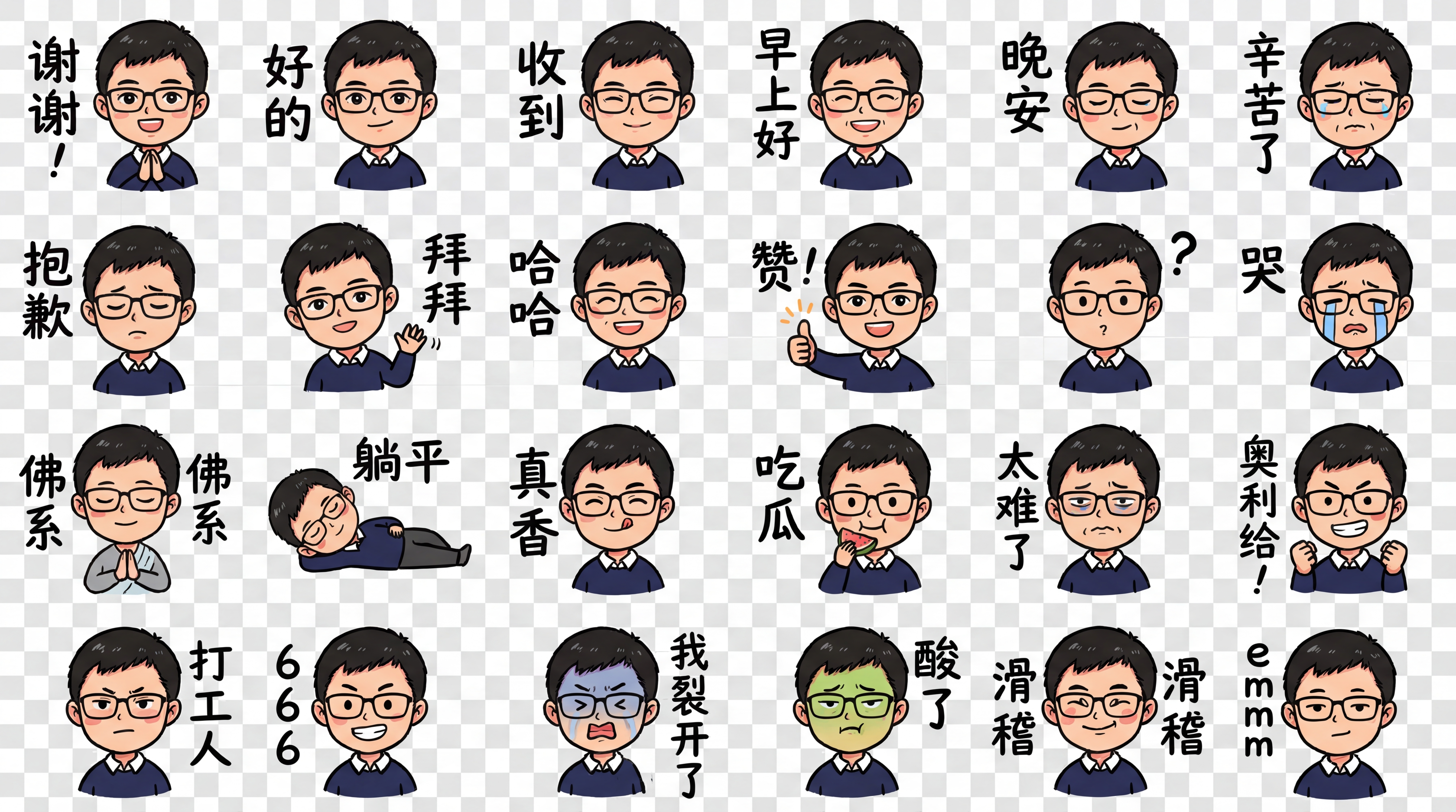 为我生成图中角色的绘制 Q 版的,LINE 风格的半身像表情包,注意头饰要正确。彩色手绘风格,使用 4x6 布局,涵盖各种各样的常用聊天语句,或是一些有关的娱乐 meme。其他需求:不要原图复制。所有标注为手写简体中文。生成的图片需为 4K 分辨率 16:9。